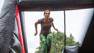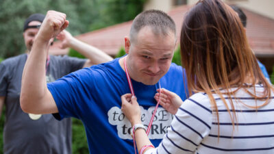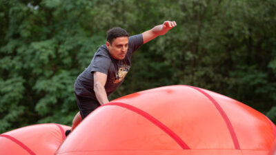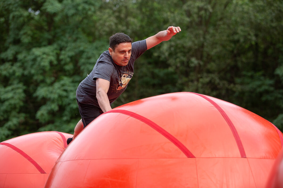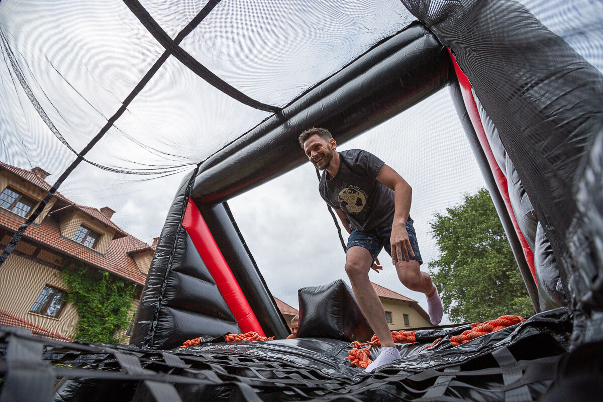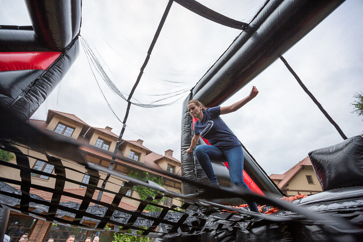 Po oficjalnej części przyszedł czas na zabawę. Wybraliśmy zespoły, które miały przed sobą trudne zadanie – pokonać dmuchany tor przeszkód. Łatwo nie było, a przejście poszczególnych odcinków wymagało nie lada kondycji i dużych pokładów siły. Daliśmy radę! Każdy uczestnik dzielnie walczył z przeszkodami przy dopingujących okrzykach kibiców.