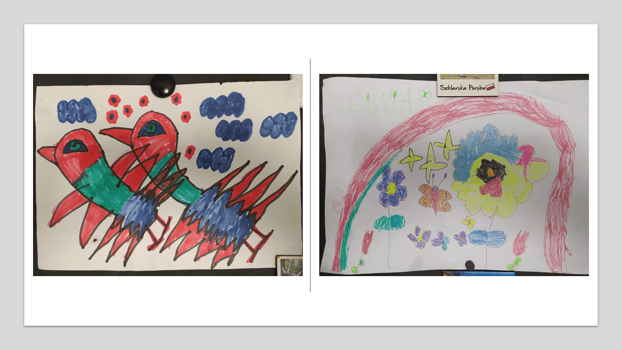 Wśród starszaków królowały kredki, ołówki i mazaki. Ich ulubione zajęcia to piłka nożna, zabawy na placu zabaw, układanie klocków, wspólne gotowanie i – oczywiście – spacery na łonie natury. Co ciekawe, konkurs wyłonił nie tylko talenty plastyczne, ale także literackie. Wśród prac znalazł się komiks z bajką o żółwiku, który marzył o przygodzie.