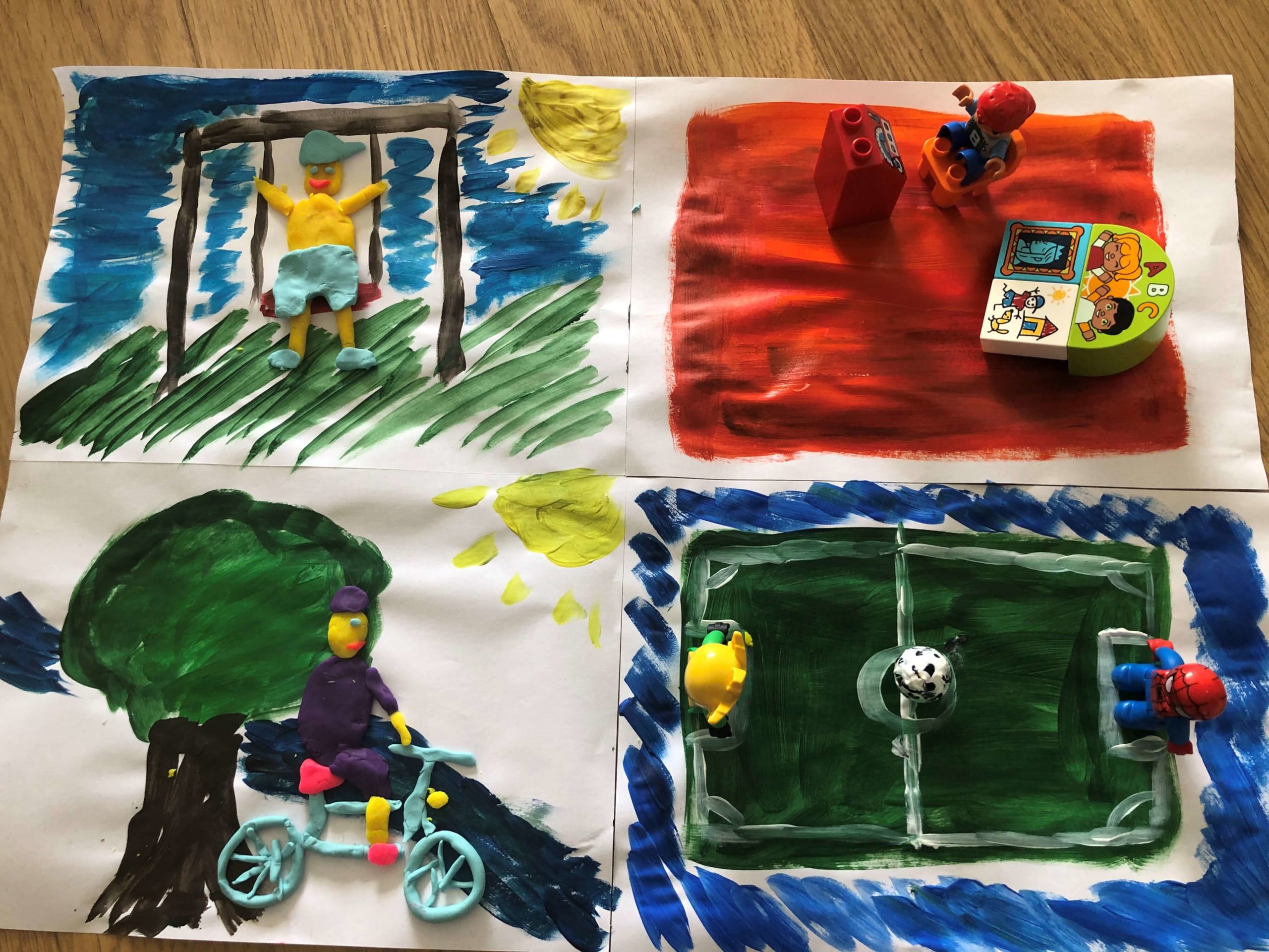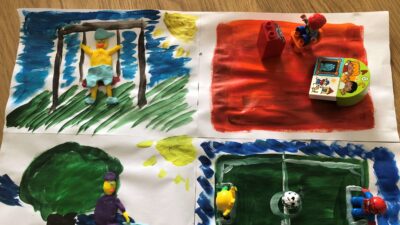 Mali Metapackersi w wieku szkolnym podeszli do zadania zupełnie inaczej. W pracach wykorzystali własne zdjęcia, ale także inne elementy, m.in. bibułę, scrubble, a nawet gazę. Jak spędzają czas z rodzicami? Na świeżym powietrzu, ucząc się i wspólnie grając w wymyślone przez siebie gry! Jest ambitnie i to nam się podoba.