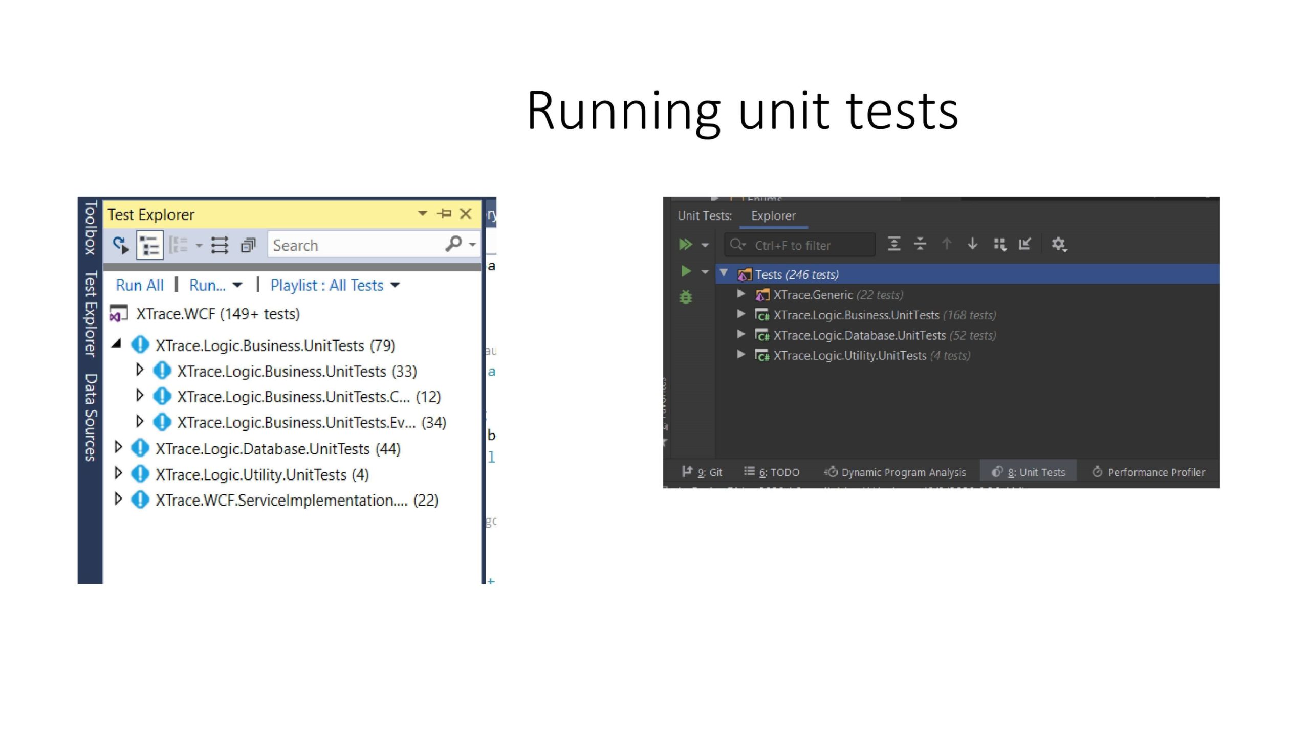 - wspiera unit testy NUnit i xUnit.net,