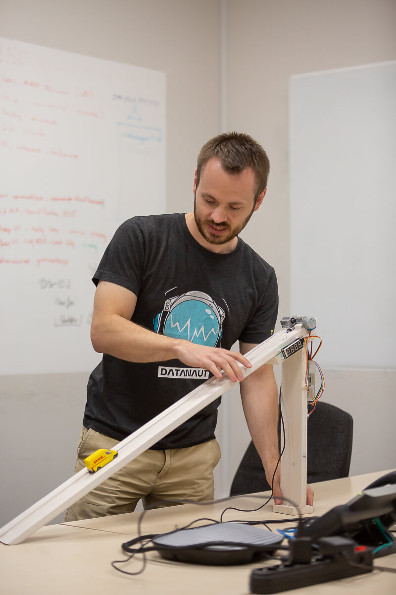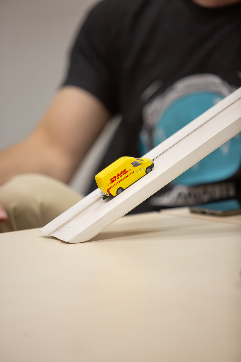Peak Counter 2.0 to dzieło naszych inżynierów – Łukasza i Marcina. Ich pierwszy wynalazek pokazywał nam dzienną ilość zamówień dokonywanych przez nasze systemy na żółtym busiku DHL. Pojazd wjeżdżał wzdłuż drewnianej belki z każdym złożonym zamówieniem.