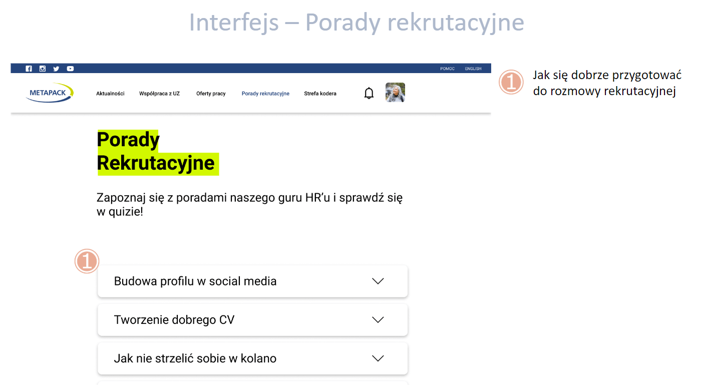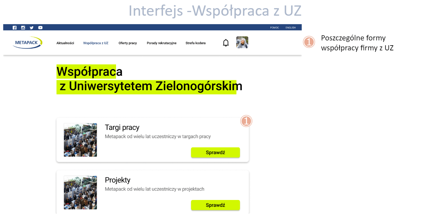 - „Aplikacja promująca współpracę między Metapack a Uniwersytetem Zielonogórskim”, opiekunowie: Patrycja i Wiktor.