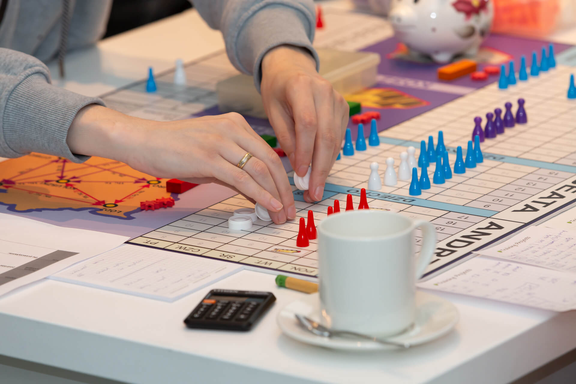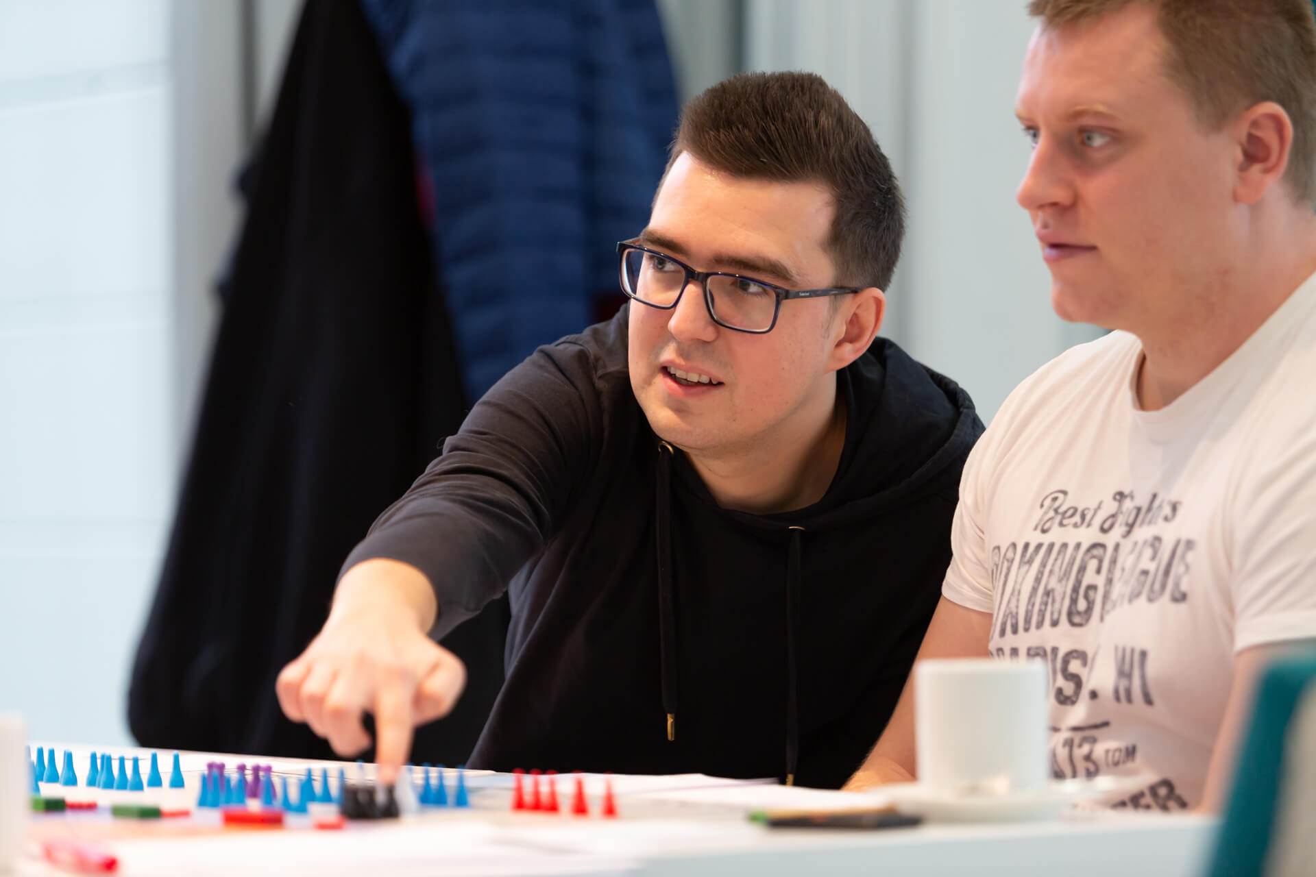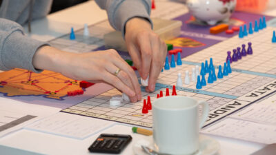 Seriously, it was not a typical family board game, of course. It was a professionally developed simulation game that we worked on for two days in groups of 15. The goal was to manage the team in such a way as to complete all tasks.
