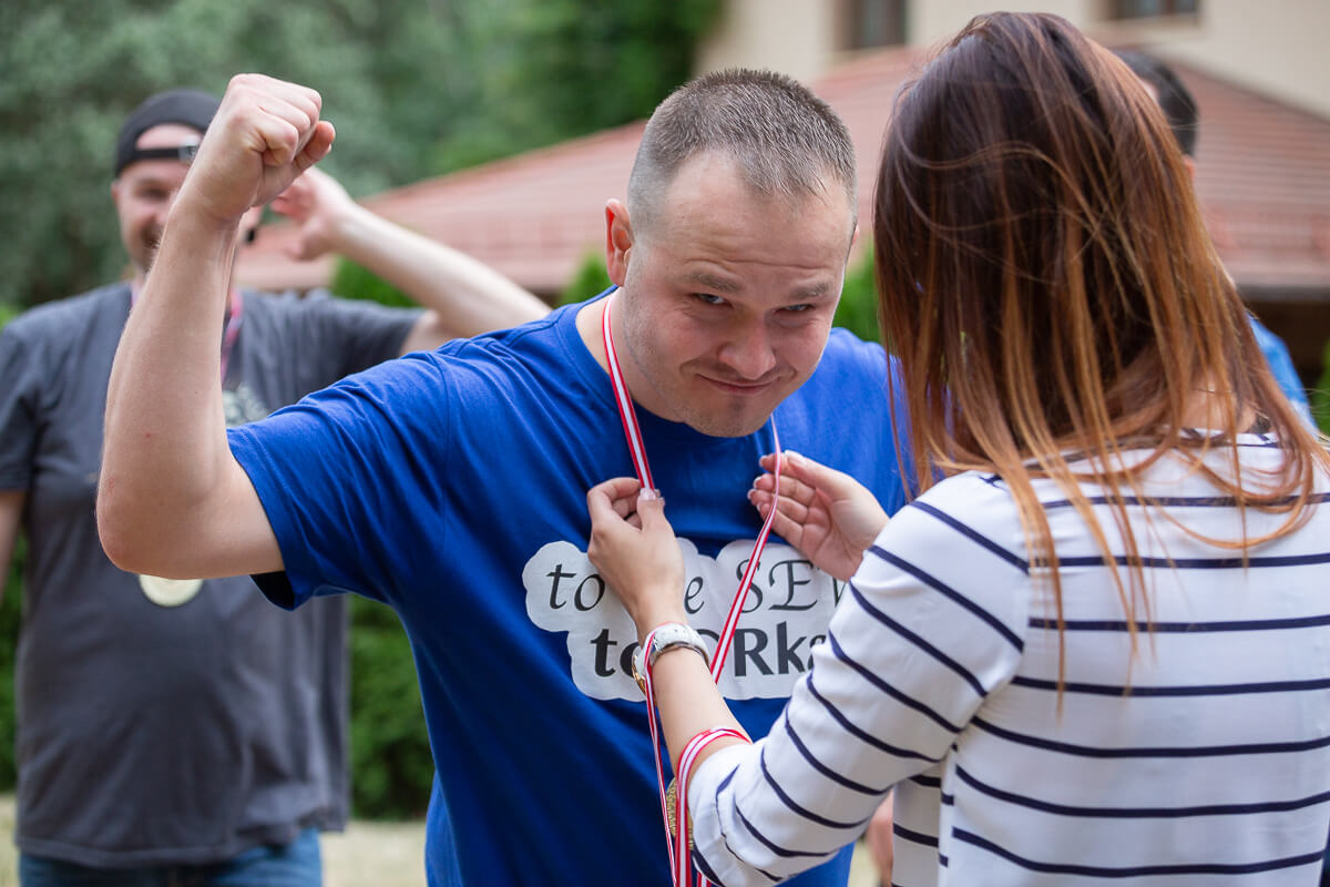 After the official part, it was time to have some fun. We chose the teams that faced a difficult task – to overcome an inflatable obstacle course. It was not easy, and the passage of individual sections required considerable physical condition and a lot of strength. We made it! Each participant bravely fought the obstacles, ecouraged by the cheering crowd.
